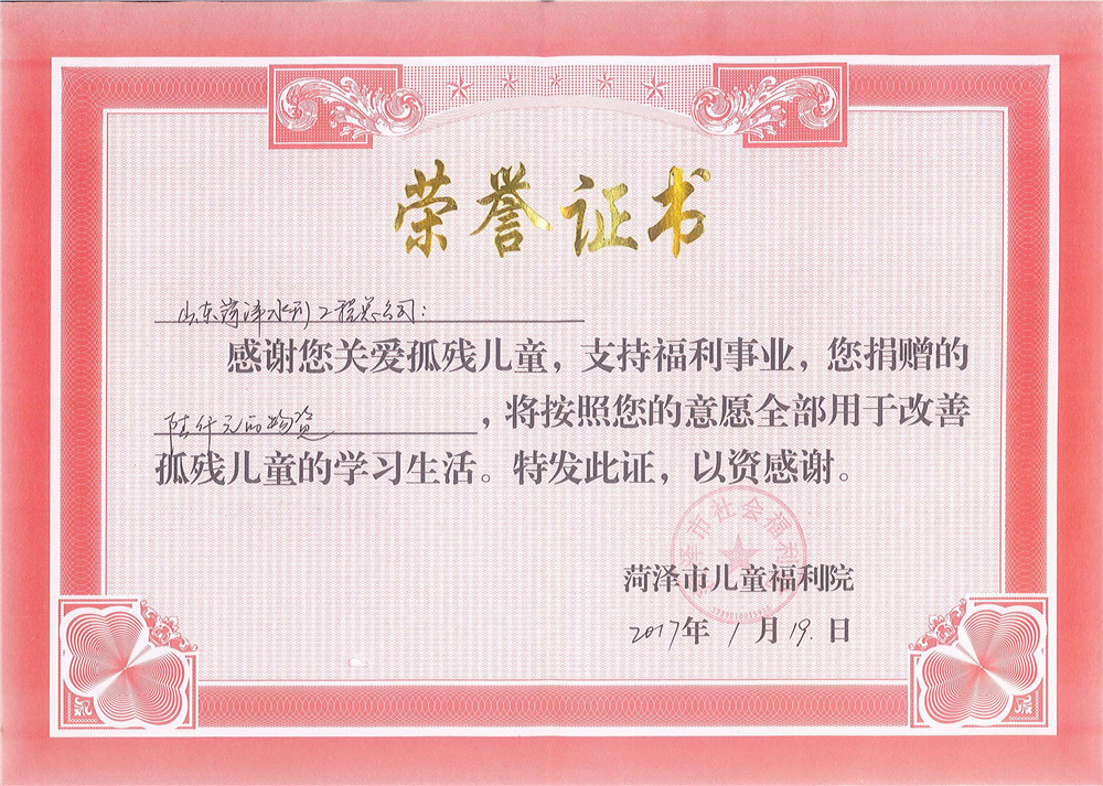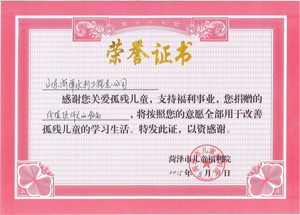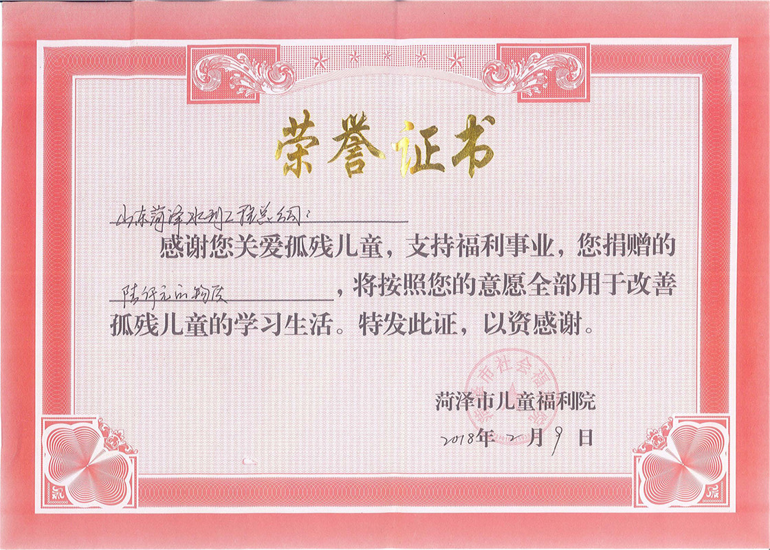 菏澤市見(jiàn)義勇為基金會(huì)理事單位--山東菏澤水務(wù)工程有限公司